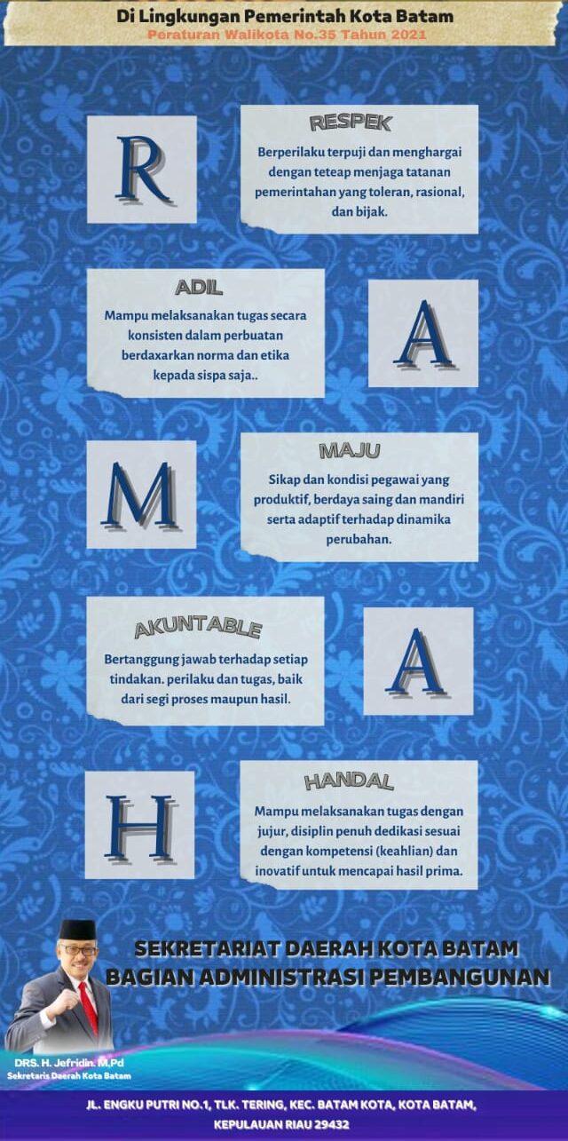 Berita 1 Juli 202225 Agustus 2022 Sosialisasi Core Values BerAKHLAK Di Bagian Administrasi Pembangunan Setdako Batam Diposkan Oleh:Adpemb Post Views: 1